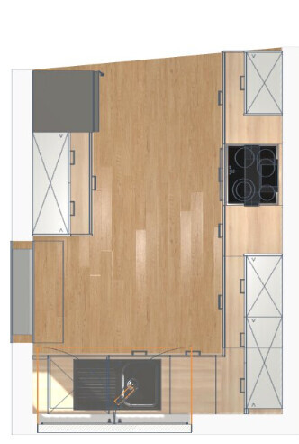 Meine Einwände, dass das Fenster dann zum Teil durch die Hochschränke blockiert ist, fand niemand irgendwie so richtig schlimm. Und meine U und Zweizeiler-Vorschläge fanden genau null Befürworter.