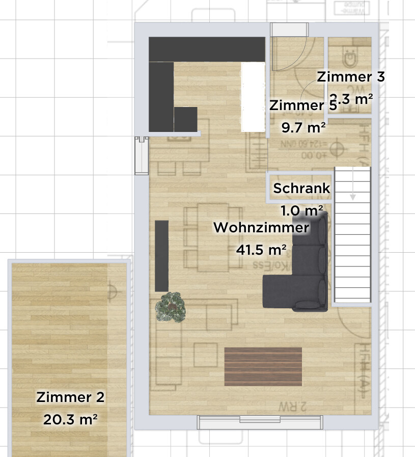 Auch mit Tür hat die Garderobe schon deutlich mehr Platz als vorher (vorher 113cm in der Nische, nachher sowas im ~180cm Bereich, je nach genauer Planung ggf mehr). Also dem Flur hilft es schon noch. Mein Mann sagt "ist einfach angenehm" und er mag die Idee die Küche vom Flur aus betreten zu können (für Einkäufe, aber auch einfach wenn man die Treppe runter kommt). Und er meint es wirkt in der Küche weniger gefangen als nen U oder weniger schlauchig als nen Zweizeiler.