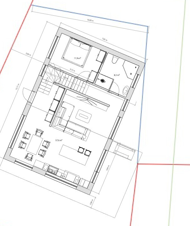 hanghaus202325.02.25 19:58Danke @ypg. Direkt aus dem Wohnraum die Treppe finde ich nicht schön. Hatte das mal visualisiert. Aber Deine Idee funktioniert ja auch aus der Diele. Das habe ich mal eingearbeitet. Nur die Treppe kann das Programm nicht. Da habe ich mal improvisiert. Schaut im Grundriss bescheiden aus.