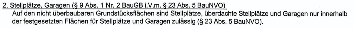 Der Satz steht im Bebauungsplan und ist für mich eindeutig. Der 3m Streifen entlang der nördlichen Grenze ist weder "überbaubare Grundstücksfläche" noch "festgesetzte Fläche für Stellplätze oder Garagen".