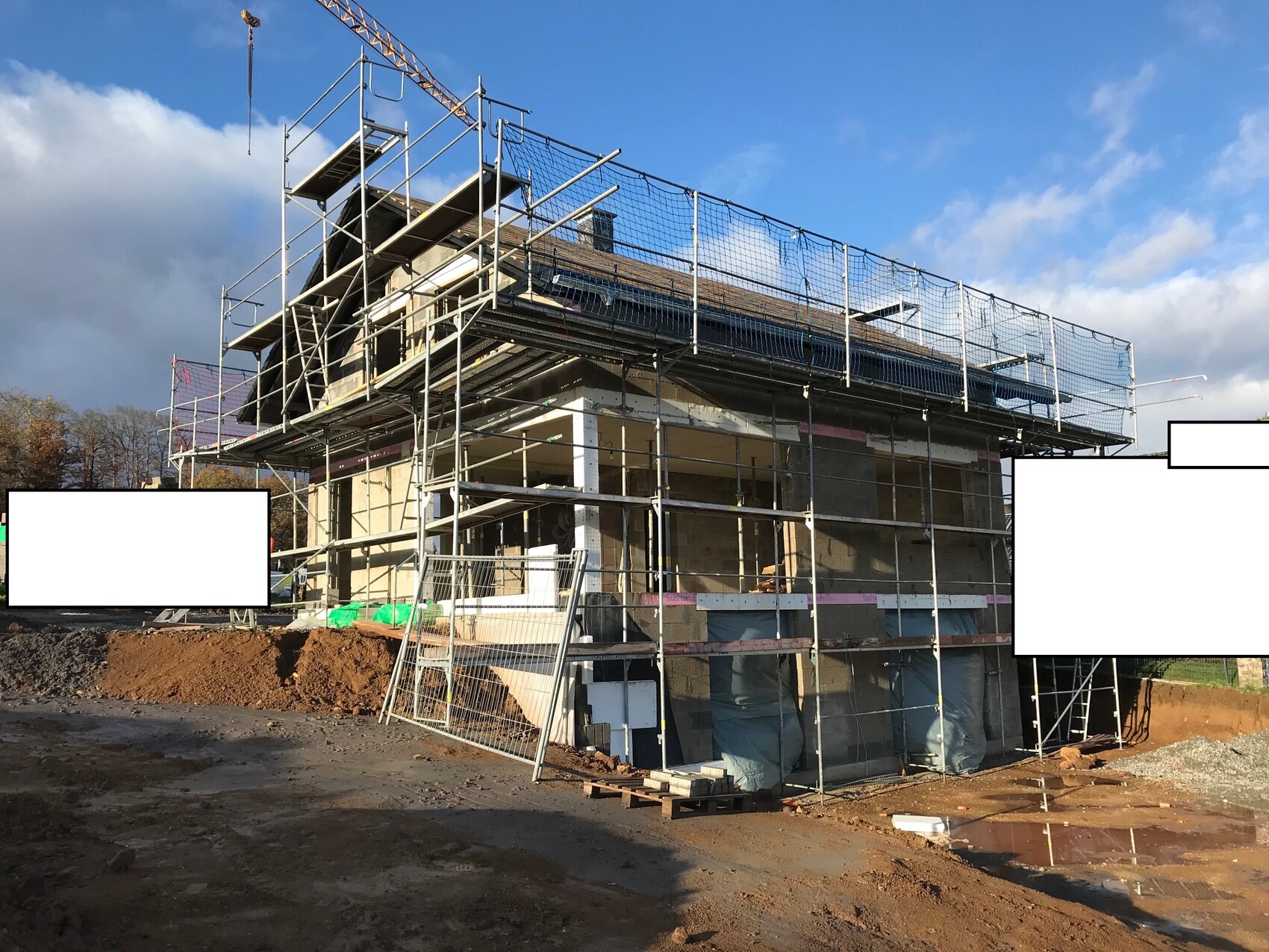 Wir liegen aktuell nur aufgrund einer Erkrankung leicht hinter Plan. Ansonsten läuft es weiterhin sehr gut und reibungslos. Dach ist pünktlich drauf gekommen und wir sind an der Dämmung und den Trockenbauwänden.