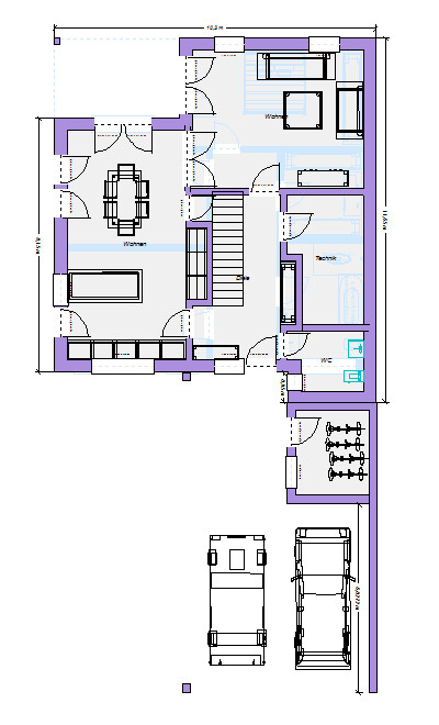 Da ihr ja 2-3 Geschosse bauen dürft, gibt es wegen der Höhe (Nachbarn) ja auch noch andere Möglichkeiten zu bauen, aber das wäre Aufgabe eines Architekten *lach - also jemand, der gestalten kann und nicht nur Erfahrung in statischen Dingen hat