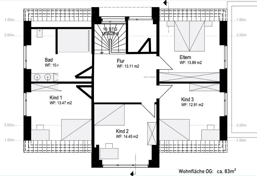 Sorry, ich habe nicht mehr alles so genau verfolgt. Warum genau kommt der Hauswirtschaftsraum so zentral ins OG? Ich würde eher in diese Richtung denken: