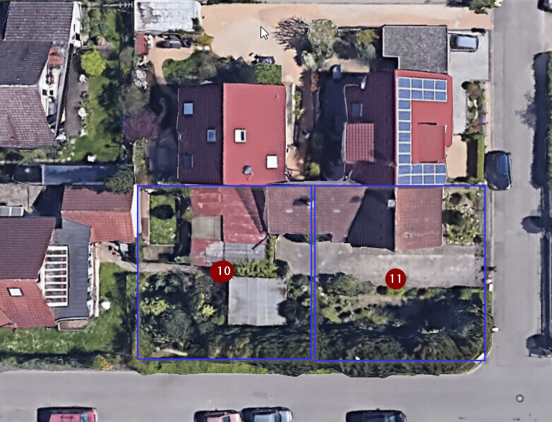Hier das Foto vom Grundstück auf dem Kopf damit man auch die Trennwand in der Mitte sieht (Feuerschutzwand) sowie normal mit Beschreibung. Wenn die Feuerschutzwand weg käme habe ich ja gar keine Privatsphäre von den Nachbarn, daher auch der Anbau. Alles was vorhanden ist, kann so auch belassen sein, daher wären wir saublöd wenn die Wand wegkäme.