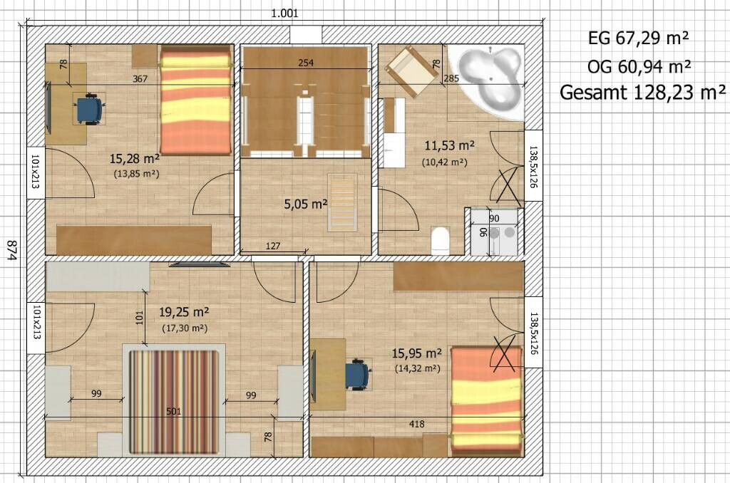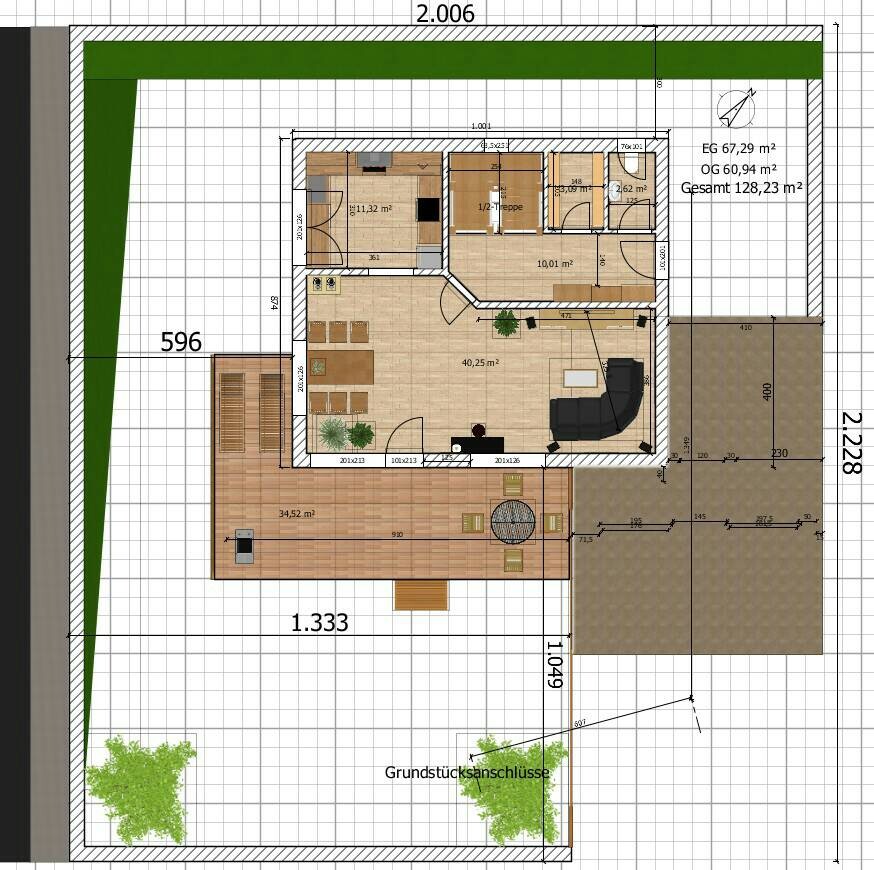 Aufgrund unseres schlechten Bodens, der für viel Geld ausgetauscht werden müsste, ziehen wir nun doch einen Keller in Erwägung. Hab daher unseren Entwurf noch mal gänzlich von vorn angefangen.