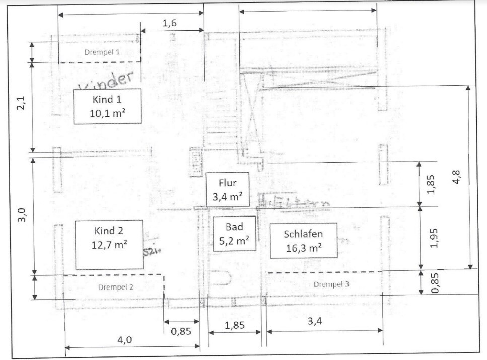wir haben einen Altbau gekauft mit zwei Kinderzimmern. Das eine davon ist ein Durchgangszimmer. Ich wollte den Grundriss hier zur Debatte stellen, da ich die Zimmer gerne trennen würde im Zuge der Sanierung. Die Trennwand ist keine tragende Wand, sodass die leicht verändert werden kann. Ich hätte die Tür zum Kinderzimmer 1 einfach nach hinten versetzt und hier quasi einen rechten Winkel eingezogen. Die irrelevanten Punkte aus der Thread-Eröffnung habe ich mal gelöscht.
