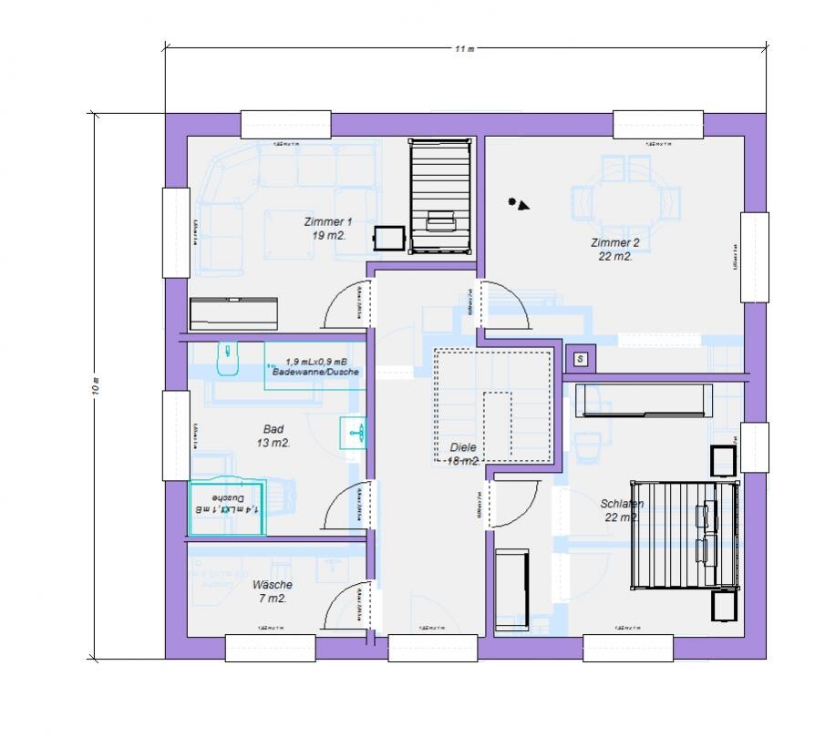 Die Problematik mit der Treppe hab ich noch nicht ganz verstanden. Ich bin leider auch kein Treppenbauer. Den Vorschlag hab ich so aus einem Katalog abgekupfert. Da war glaub ich auch keine weitere Wand, oder doch... ??? Ich guck. 8-)