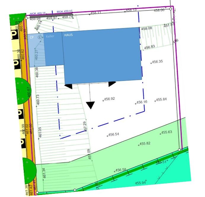Ich habe mir nun auch noch die Fotos angeschaut. Danke fuer den Tipp. Die Nachbarn richten das Haus mit der Langen Seite Richtung Sueden aus. Warum Du nicht? Ich schaue mir das mal noch genauer an.Vielen Dank für Deinen Vorschlag und die konkreten Ideen!Die Nachbarhäuser nördlich von uns sind von einer Straße her angebunden, die 90 ° zu unserer liegt (siehe Anhang, unser Grundstück ist das mit 791 qm).