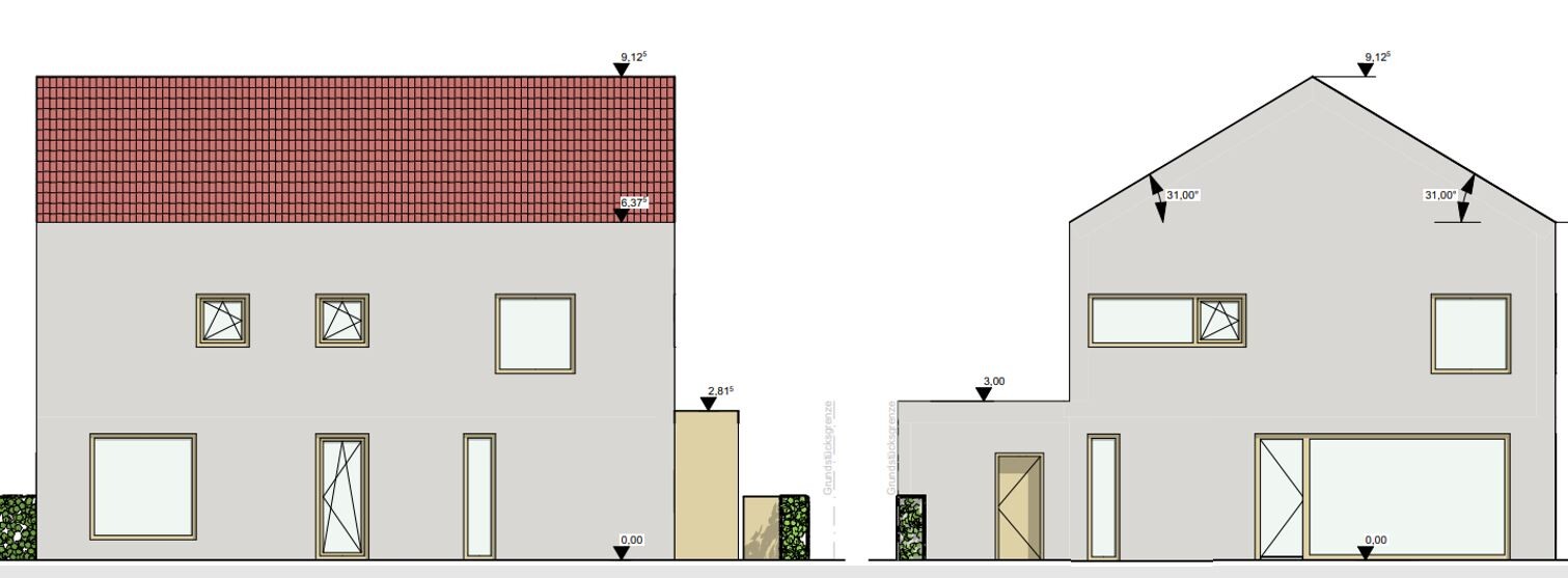 Um das ganze ein klein wenig zu harmonisieren, denken wir darüber Nach das Fenster des Arbeitszimmers aktuell auf BRH90 mit dem WC Fenster BRH158 einzufangen. Damit würde es etwas besser aussehen, aber im Arbeitszimmer ist das dann kein Fenster mehr, aus dem man gut rausgucken kann. Ist dann wie im WC ein "Privatsphärefenster".