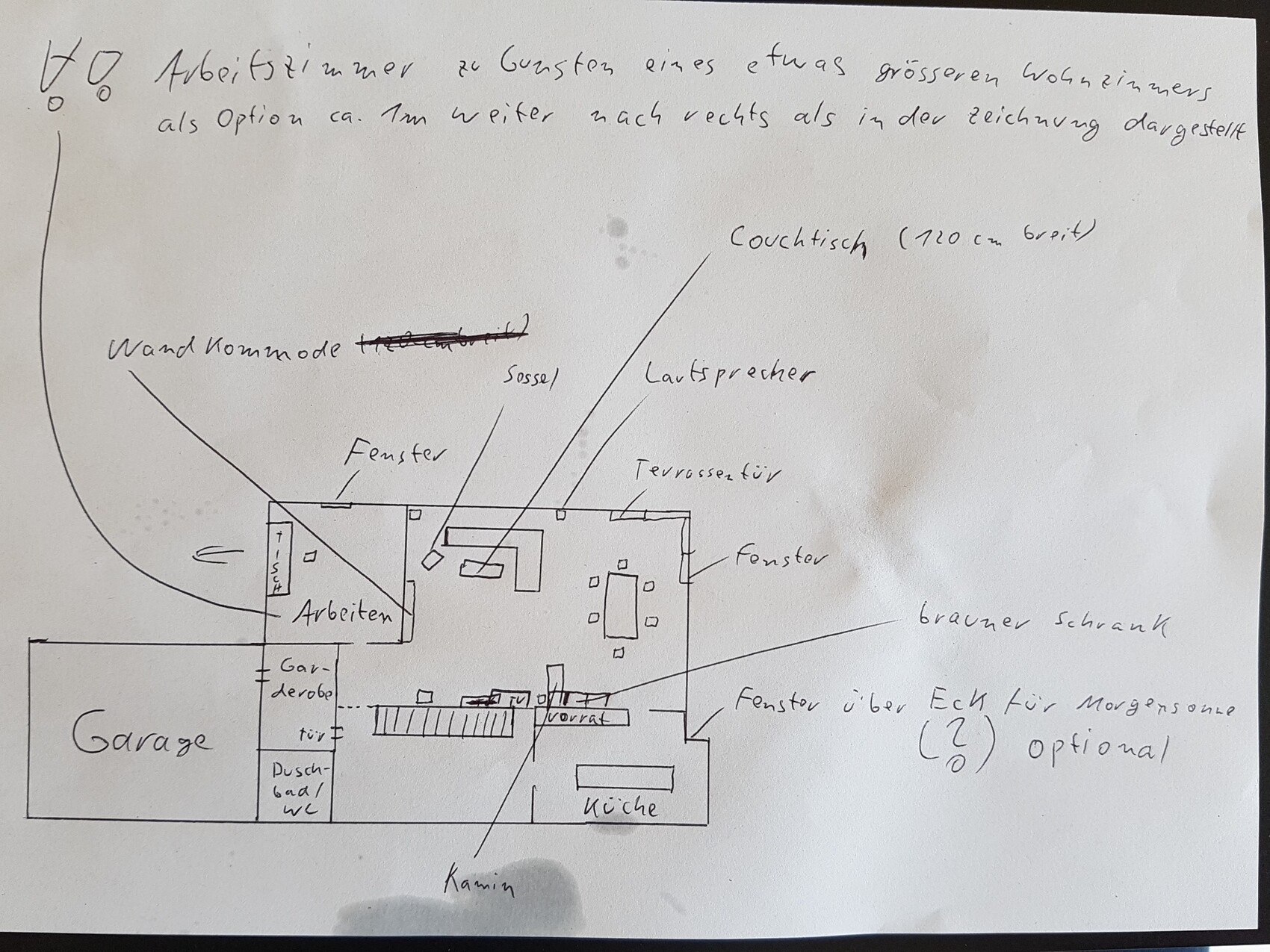 Garderobe und WC ist verbessert, finde ich - dieser Bereich war mir zu langgezogen und hat nur Fläche verbrannt. Küche und Speis: verplant. Es und WZ: Fläche hat sich scheinbar nur ergeben.