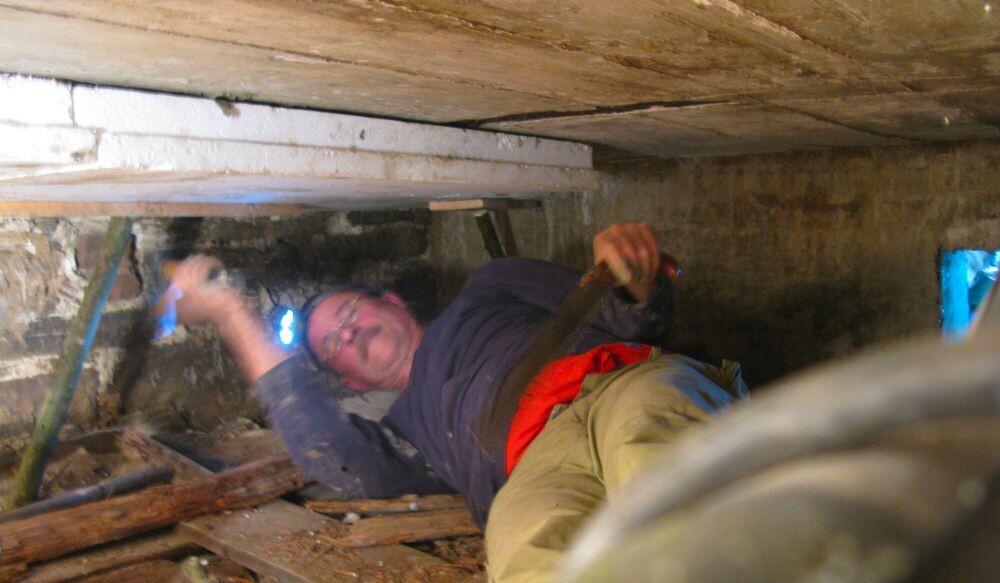 Das ist etwa 1/4 des Kellers. Davor befindet sich ein ca. 1,20m hoher und etwa 2,50m tiefer Betonblock, der sozusagen mitten im Raum vor dem Kriechbereich steht.