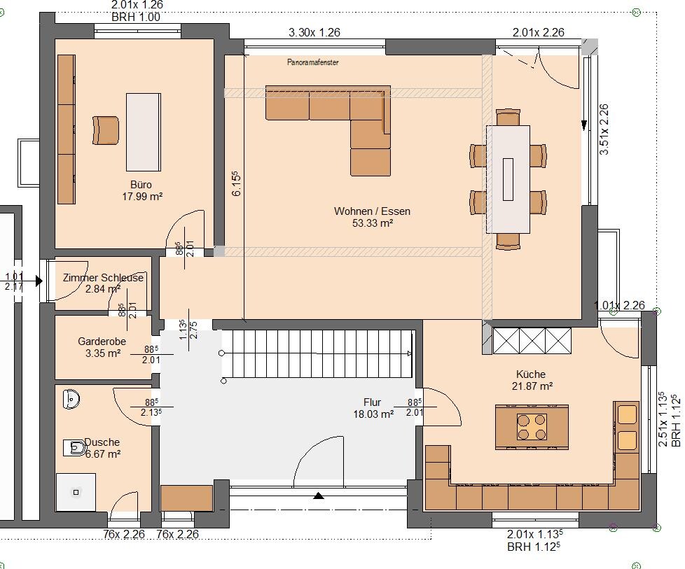 Sonst finde ich das Ganze ziemlich gut. Kenne aber die neue Kalkulation noch nicht. Die Fläche ist etwas größer aber es müssten sich dagegen konstruktionstechnische Kostenvorteile ergeben. Bin gespannt.