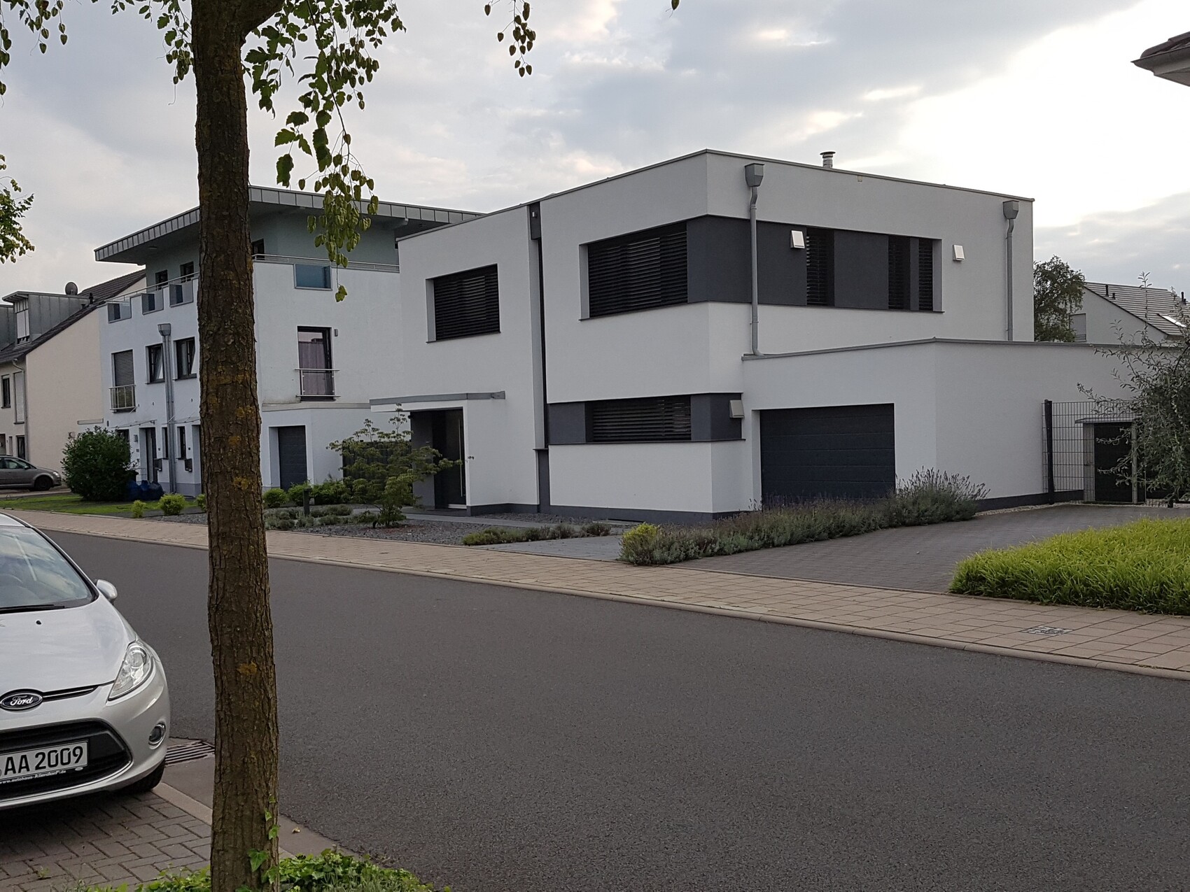 Ein klassisches Bauhaus habe ich auch noch fotografiert, was ich mit Dachüberstand gar nicht so schlecht finde.Das linke, mit der umlaufenden Dachterrasse, dessen Ecke hinter dem Bäumchen verdeckt ist ?R.Hotzenplotz schrieb: