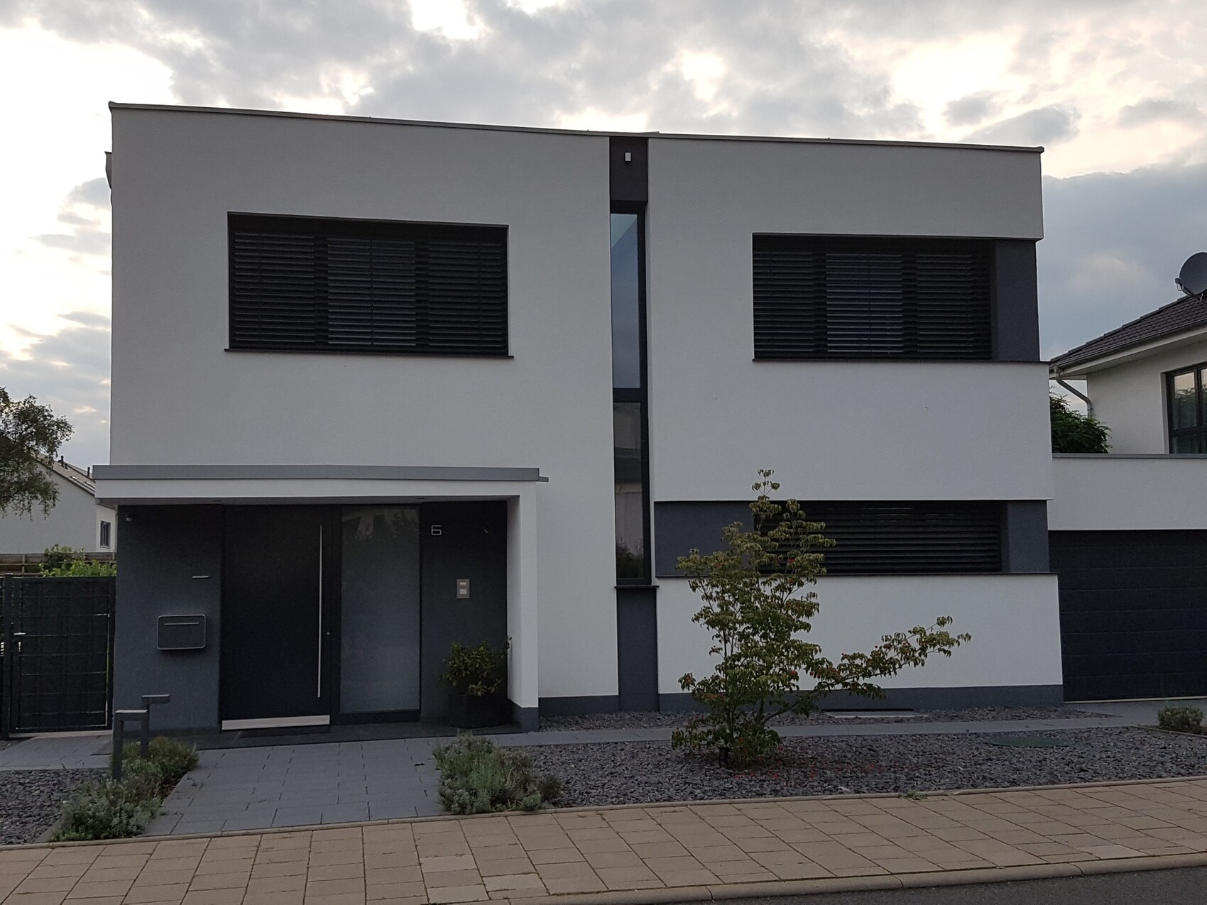 Ohne Raffstores wäre es deutlich weniger interessant.Ohne Raffstores wäre es deutlich weniger Meiermüllerschulze 2015.Habe ich Deinen Sprachgebrauch nun richtig verstanden: "klassisches Bauhaus" meint bei Dir, wenn es nur weiß ist und das Dach draufliegt wie eine Granitplatte auf einem Grab, und "Bauhausstil" wenn das Dach "nicht sichtbar" ist und an der Fassade auch grau vorkommt ?