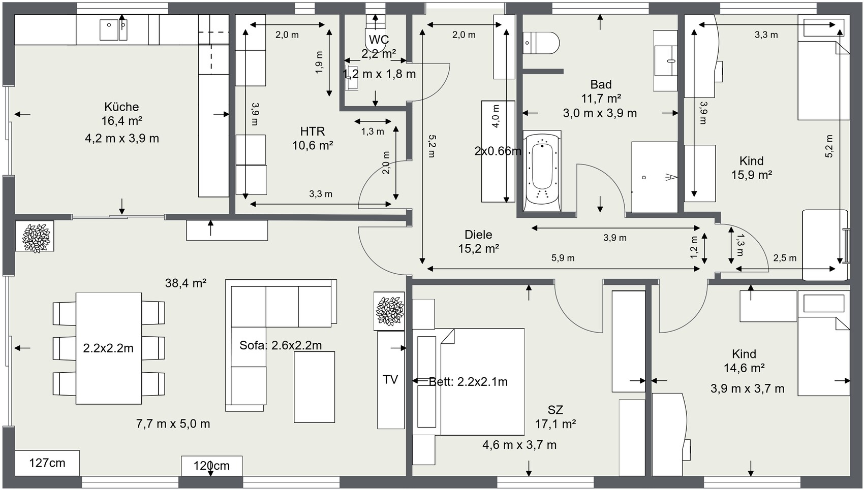 Zudem werden wir das Haus um 1m ggü. dem Standard verlängern.