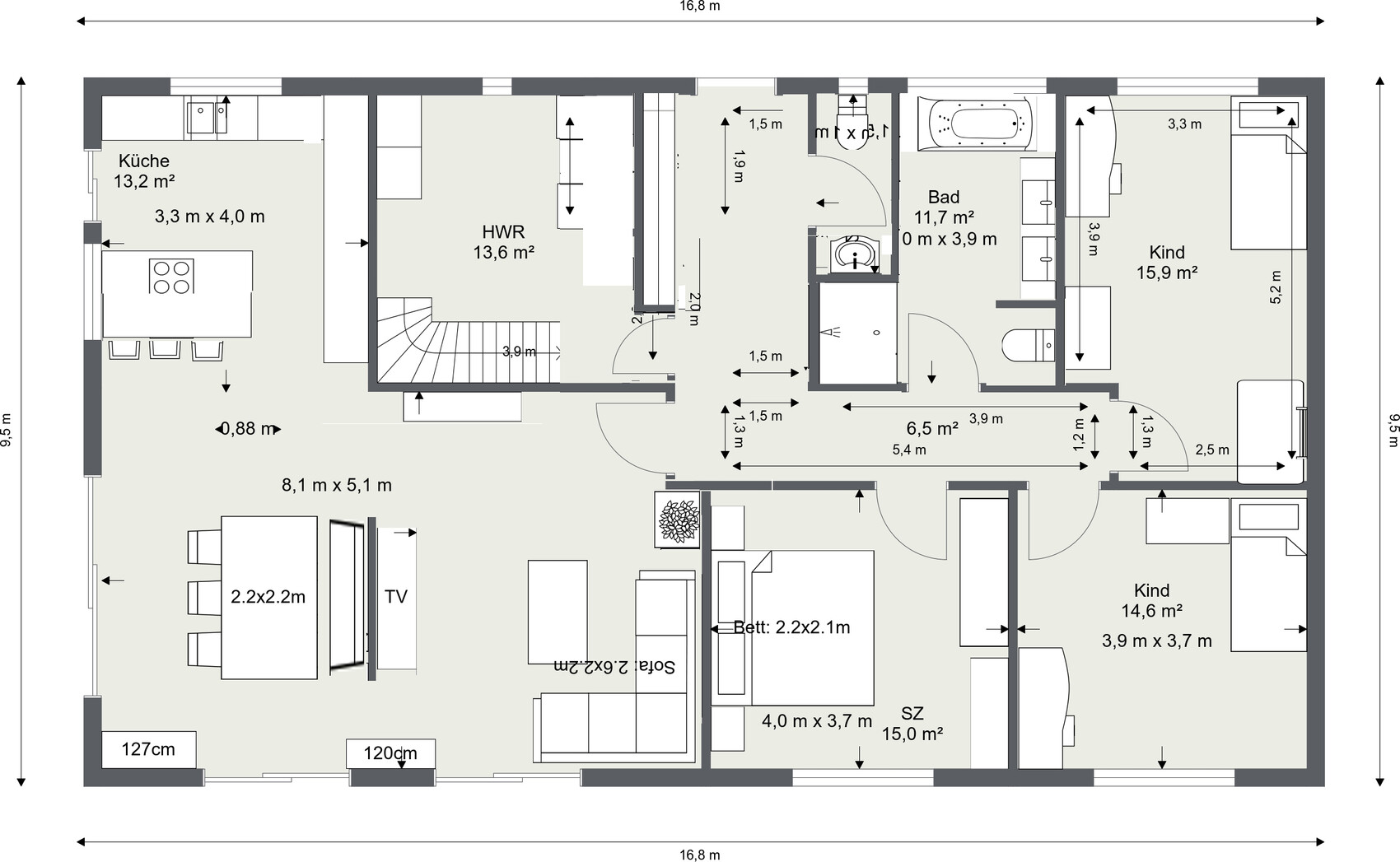 ᐅ Grundrissfinalisierung Bungalow 130m² für 4 Personen