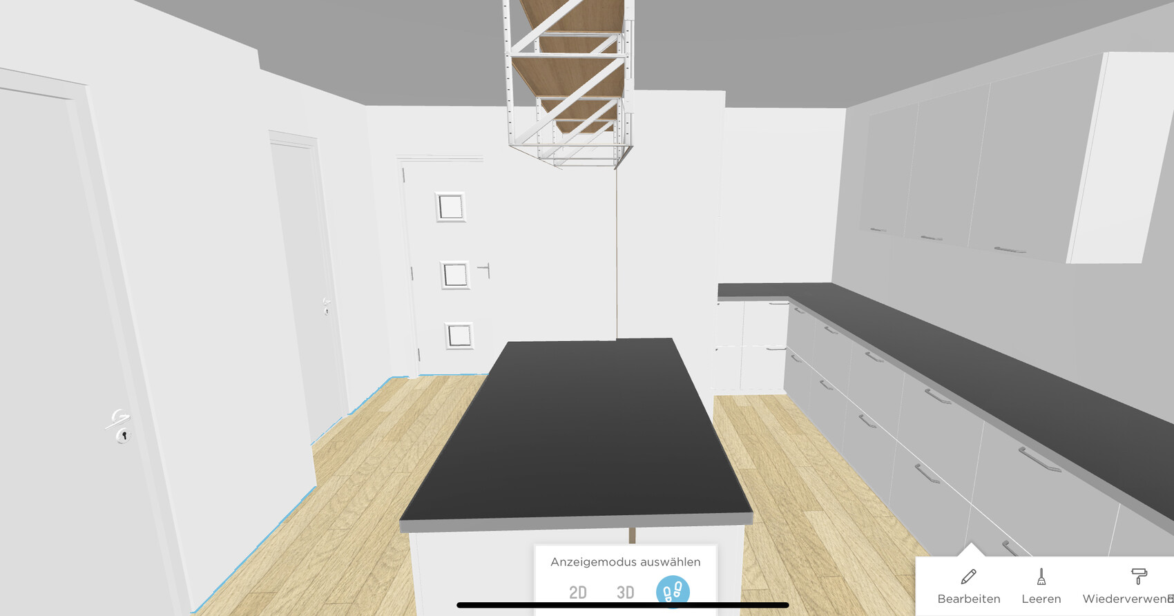 , und wo stellst du Kühlschrank, Hochschrank mit Backofen und vielleicht einen Vorratsschrank hin?