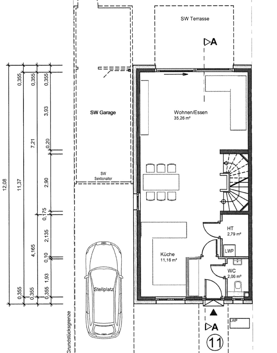 Fenster, Treppe, Heizungsraum und WC können nicht verändert werden. Es kann nur die Wand in der Küche verändert werden und eventuell die Türanschläge (jedoch nur nach außen bzw innen wie auf den Grundrissen.Wenn das zentrale Element eines Hauses - die Treppe - und zusätzlich noch zwei weitere Räume (also die komplette rechte Seite) nicht verändert werden kann, bleibt nur etwas Kosmetik übrig.- wo setzt man die Türe für Deinen Windfang..(vor oder nach dem Heizungsraum...)
