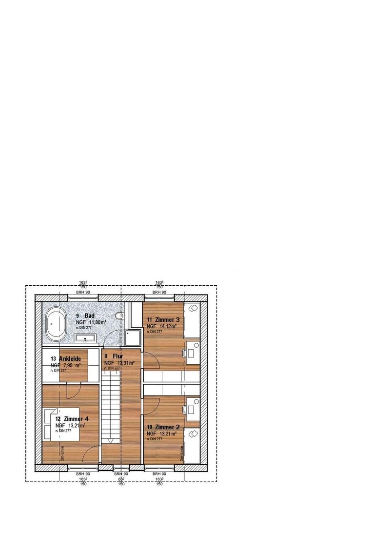 Natürlich ergibt sich mit einer 2/4 gewendelten Treppe im EG ein anderer Grundriss.