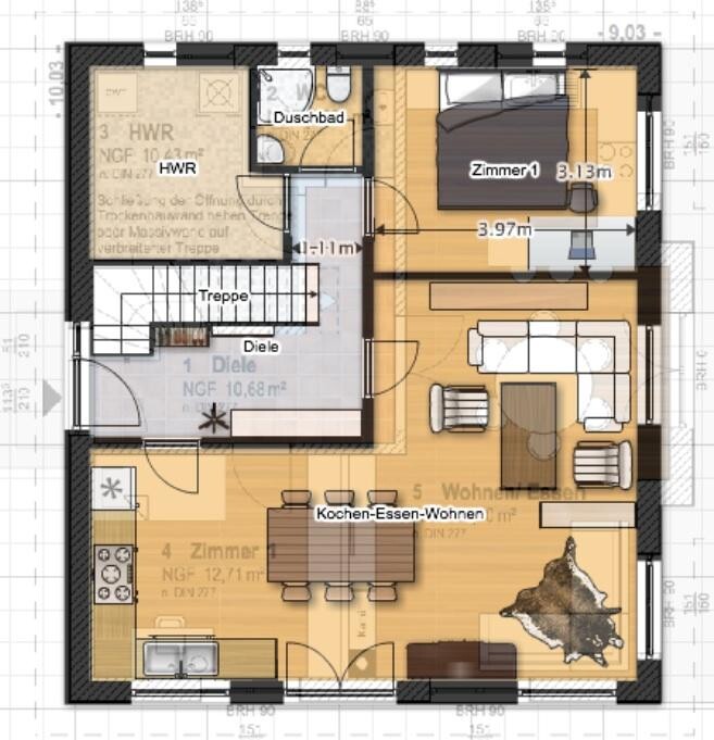 Ihr baut ohne Keller, richtig? Dann ist der Hauswirtschaftsraum viel zu klein bemessen.