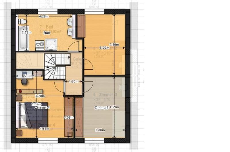 -> Dem Haus können einige cm in der Länge gut stehen (Verbreiterung der Küche und Schlafzimmer). Somit könnte man auch die Trennwand Wohn/Zimmer verschieben, sodass das Gäste-WC vergrößert werden kann.