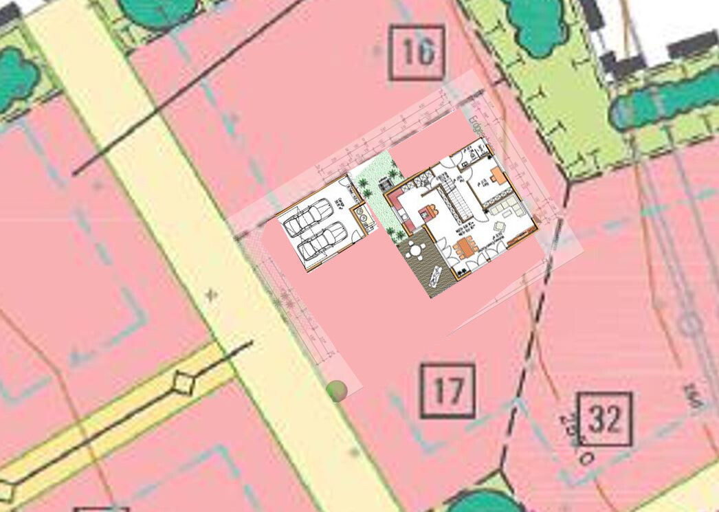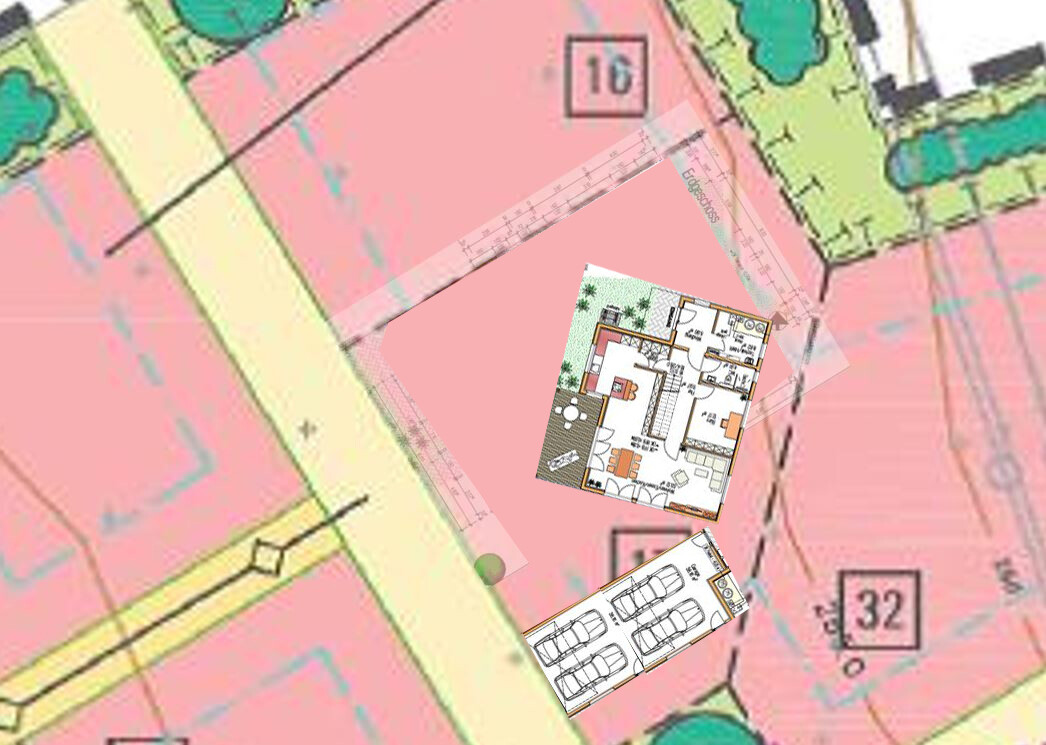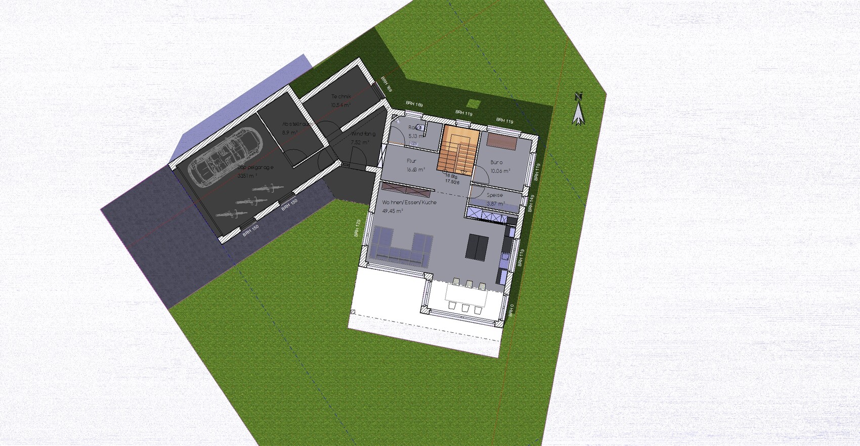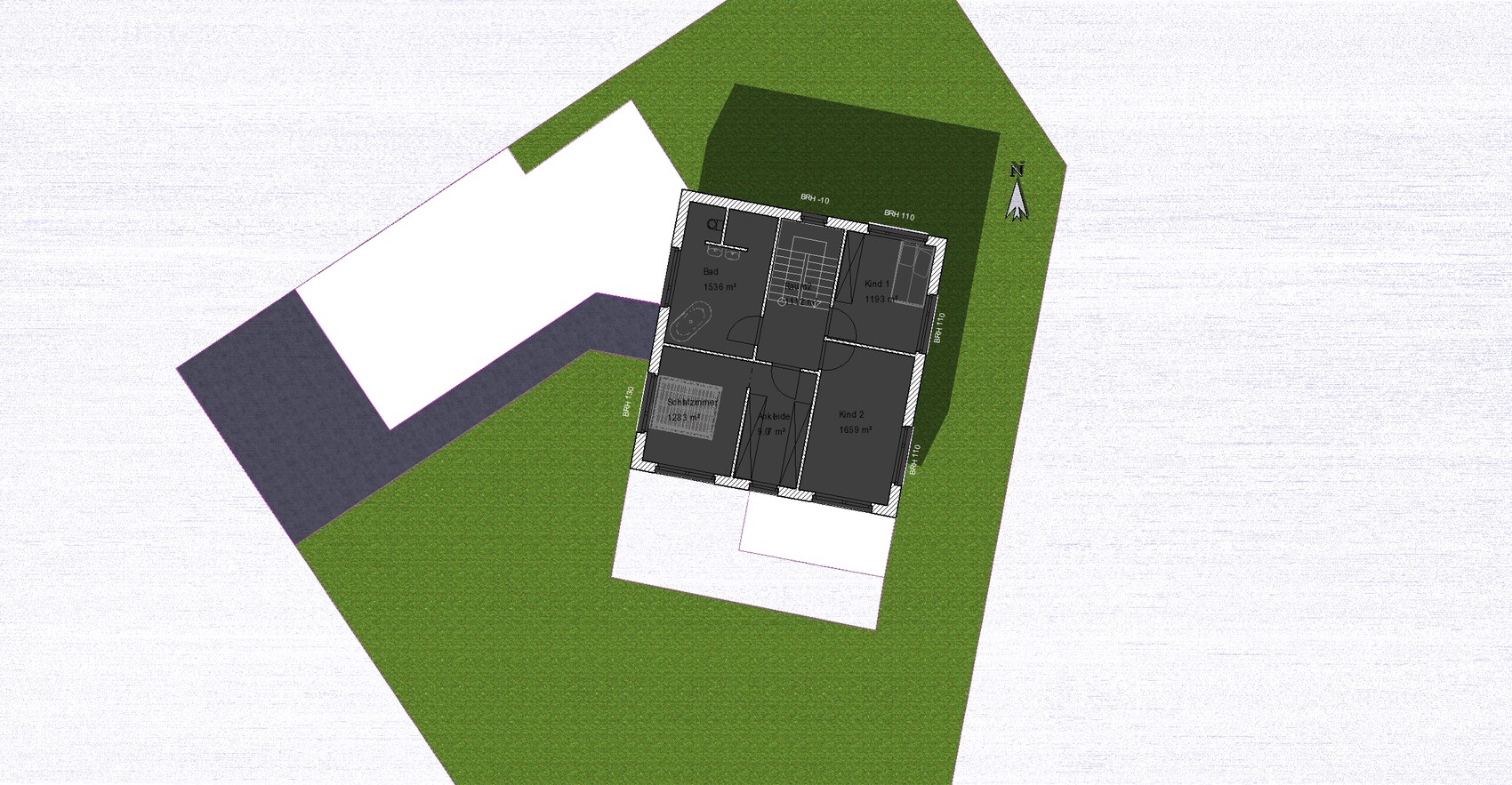 Ich hätte ganz in der Südspitze mit der Garage begonnen und mich dann entlang der Ostgrenze mit dem Haus entlang gehangelt, sodass eine dreieckige West-Garten Fläche übrig bleibt.ypg schrieb: