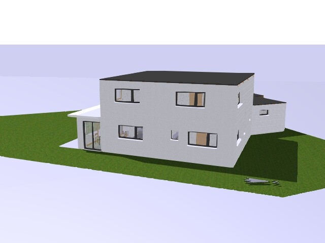 Mit dem Flachdach sind wir uns allerdings nicht sicher. Es könnte auch ein Walm- oder Pultdach werden.