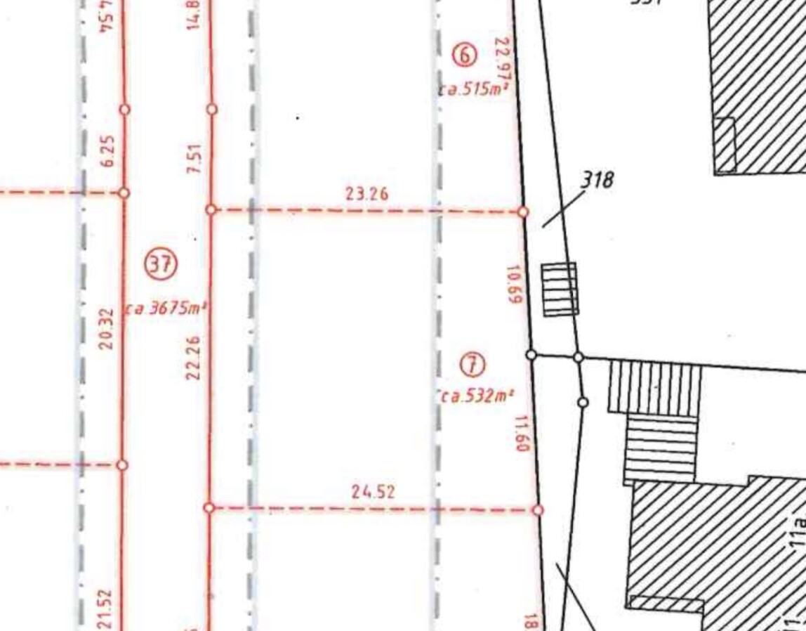 Grundstück aus dem Teilungsplan habe ich mal angehangen, die Straße ist im Westen und eine Spielstraße mit Sackgasse, im Osten sind Bestandbebauungen mit 1,5 geschossen EFHs, Norden und Süden sind Neubaugrundstücke wie unseres.