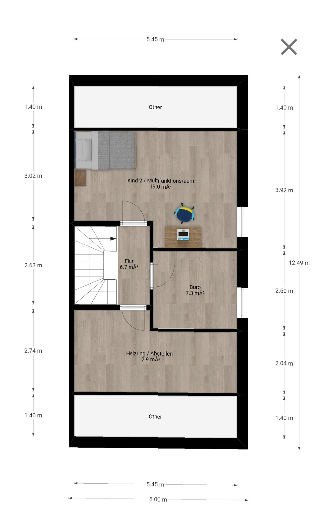 Möbel in den Kinderzimmern einzuzeichnen finde ich super schwer. Gefühlt ändern sich die Bedürfnisse da ja doch häufiger mal, aber eine Variante kommt noch. Drempel werd ich auch noch einzeichnen, aber nicht mehr heute