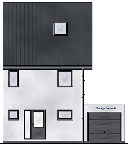 - Die Farben haben noch nichts mit unserer Planung zu tun. Ich finde auch, dass die Projektion der Dachfläche sehr merkwürdig anmutet und die andere Doppelhaushälfte fehlt natürlich total...