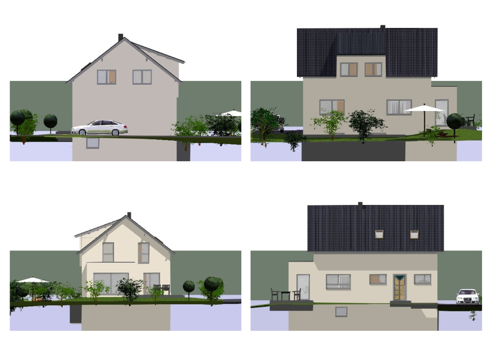 - Die mittlere Höhe des Baugrundstücks muss mindestens Niveau Straße haben (derzeit 60-80cm darunter), maximal 60cm darüber.