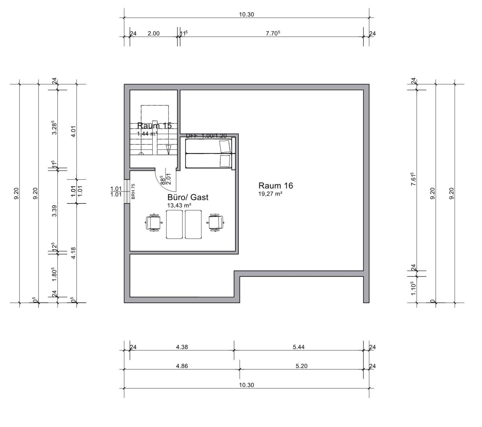 Büro: - Büro für 2 notwendig für teilweise Homeoffice im DG geplant