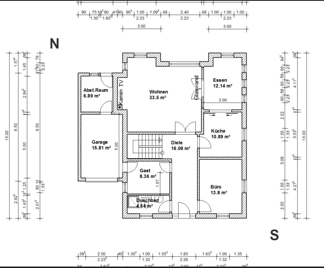 Die Treppe ist der Casus Knaktus, sie ist mit einer Breite von 177 cm ohne Putz eingeplant. Mit einem Treppenauge und Geländer ergibt dies eine Laufbreite von knapp 80 cm. Das passt nicht zu dem Anspruch der Flure.Tja, es ist nicht alles stringent, wo "Konzept" drübersteht kbt09 20.08.2018 07:01
