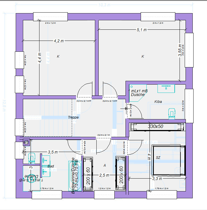 Danke! Genau so. Türen so find ich sinnig. Wie groß ist das Kinderbad dann ca.?