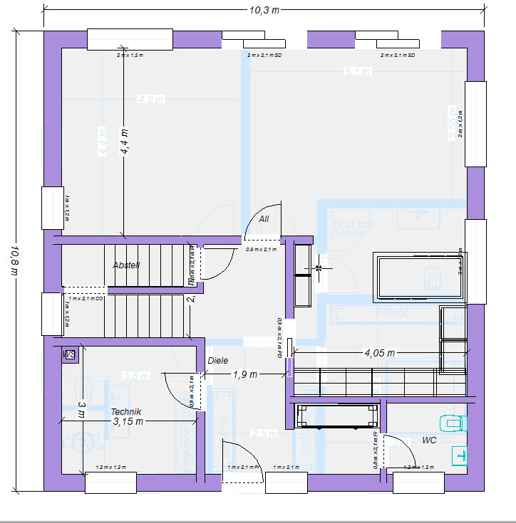 Wie groß ist das Kinderbad dann ca.?In diesem Fall 6,6m² - aber das könnt Ihr ja mit Eurem Architekt bis auf den Zentimeter durchspielen.Ja, werden wir besprechen.
