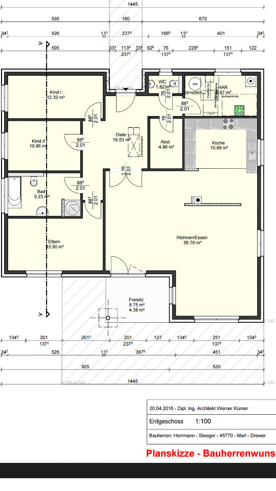 Der Bungalow kann unter Garantie sehr viel"fetter" werden, wenn man satt dem Y einen geraden Bungalow oder einen L-Bungalow baut. Bei gleichem finanziellen Einsatz...Klar! Da hast du voll Recht. Aber ich merke es ja bei unserem Bungalow, dass es schon bei 14x14,5 m schwer wird so richtig abzugrenzen. Auch bei uns müssen die Kinder durch den offenen Flur. Ich fand es mit ner Trennwand einfach viel zu eng und dunkel. Kusmar18.01.17 19:58