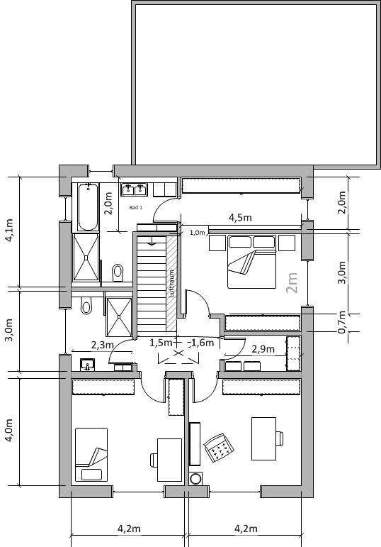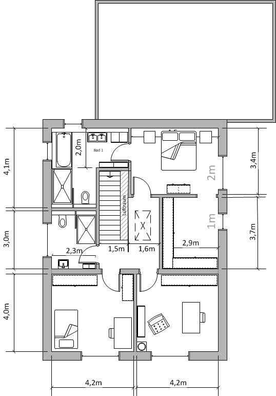 bzgl. der Anmerkungen von Euch und auch von uns selber haben wir jetzt den Grundriss ein bisschen geändert. Die größten Änderungen sind folgende: