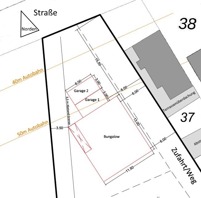50 m Autobahn heißt: die verläuft von da in 50 m Entfernung ? - mit welchem (auch geländemäßigen) Schallschutz dazwischen ?