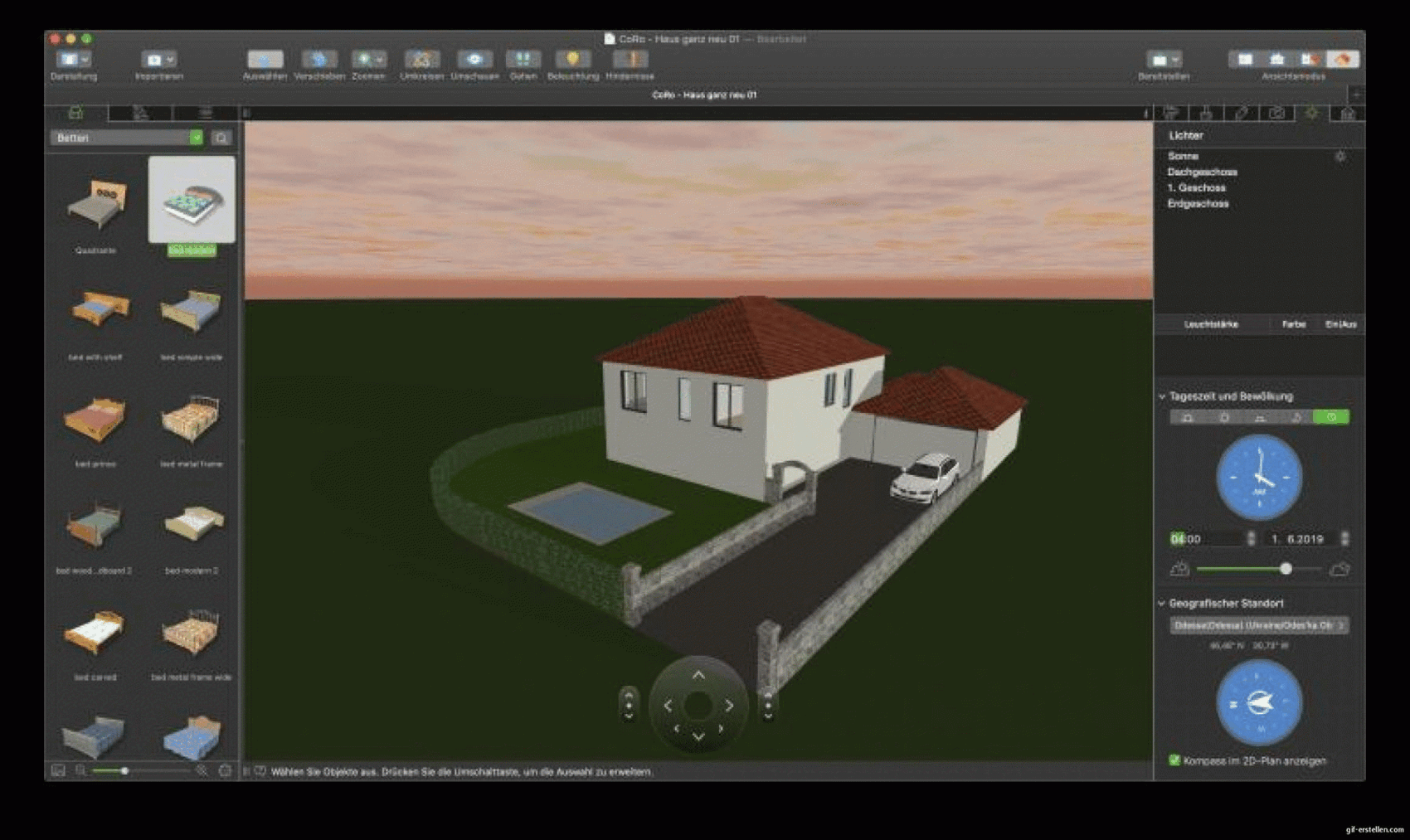 Hier der Sonnenverlauf noch im Anhang an einem 1.6. des Jahres Haus von Vorne