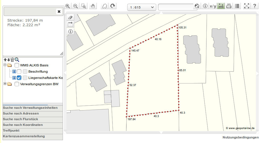 - geplante Ausrichtung des Gebäudes: Ost-West