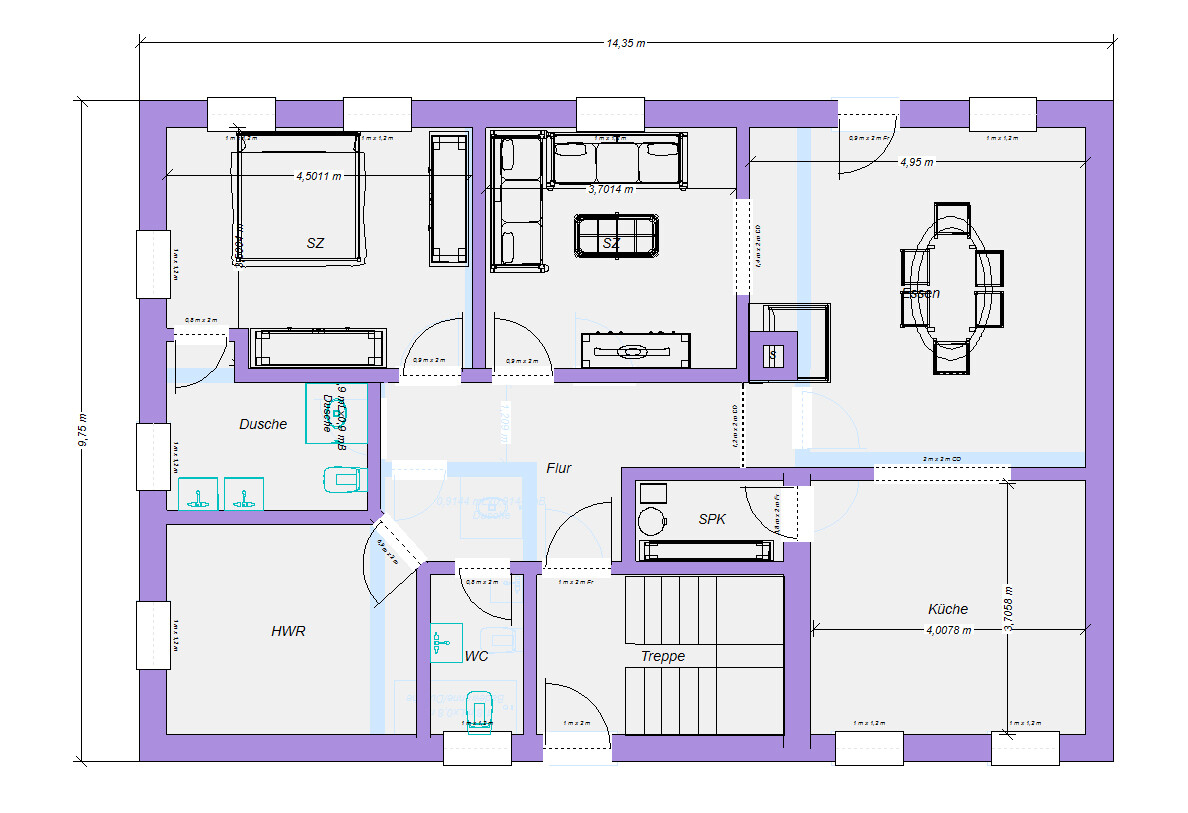 Ach so, Fenster sind mir teilweise zu wenig oder zu klein. Besonders im Wohnzimmer.