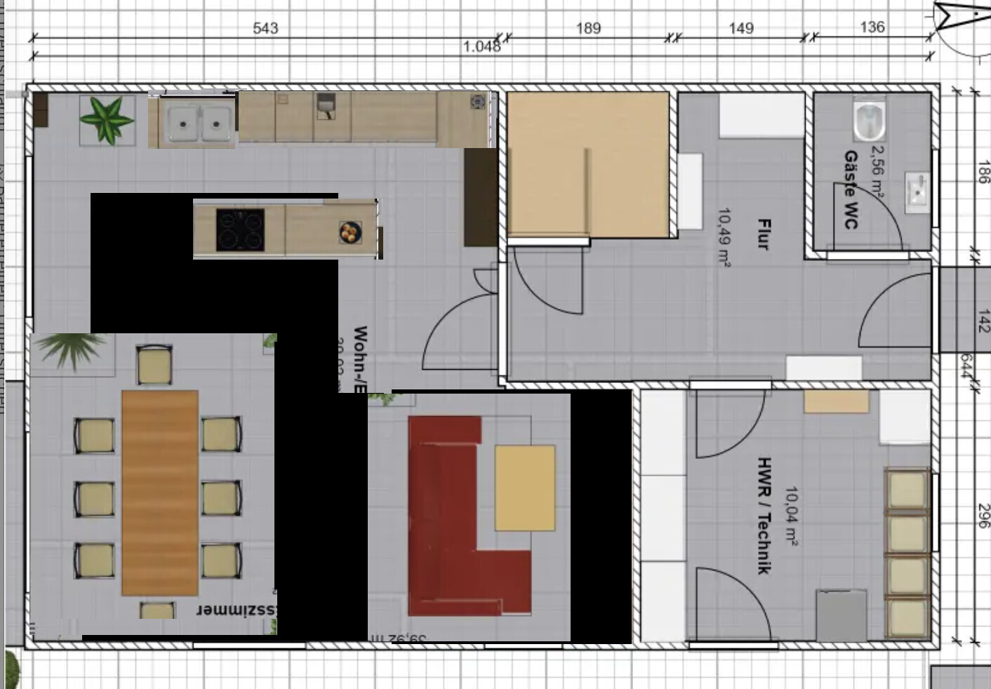 Schorsch_baut11.06.24 11:55Der Wohn-Essbereich bei Eurem Entwurf wird sich anfühlen, wie eine 1-Zimmer Wohnung, so eng wie alles auf einem Raum ist.