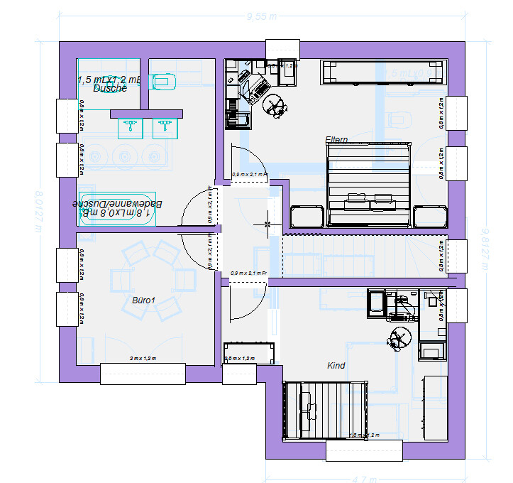 . . und ist nicht der Penny wert. Er ist so richtig bescheiden. Warum zieht man nicht die Küchenwand gerade und macht dort (unter der Treppe) den Zugang zum TK-Raum? Das, was da jetzt gezeichnet ist, ist recht albern. Auch die separate Abseite unter der Treppe ist albern. Was soll denn das für eine Tür sein? 1,50/1,70 Höhe ?Der Weg in den Hauswirtschaftsraum/Technikraum hat eine Breite von 0.95m.