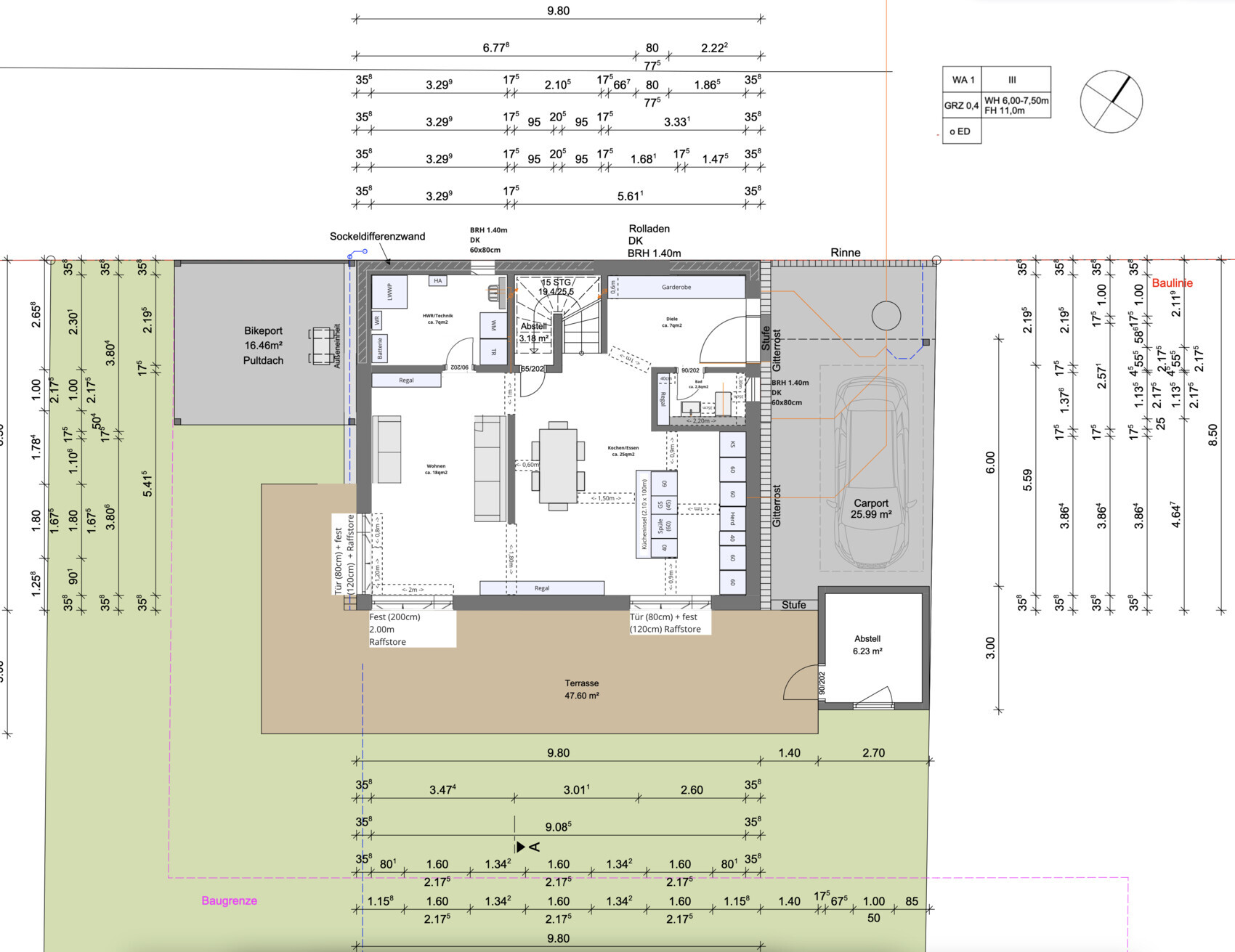 Das Küchen-L geht jetzt zur anderen Seite, so habe ich an der Arbeitsfläche einen direkten Blick in den Garten / Die Küche wäre falls wirklich zu klein noch zu einem U erweiterbar.Sie ist immer noch zu „klein“.Sorry, aber es geht so nicht. Du hast keine Ausbildung noch wirklich planerisches Verständnis. Ein Programm zu bedienen reicht einfach nicht.
