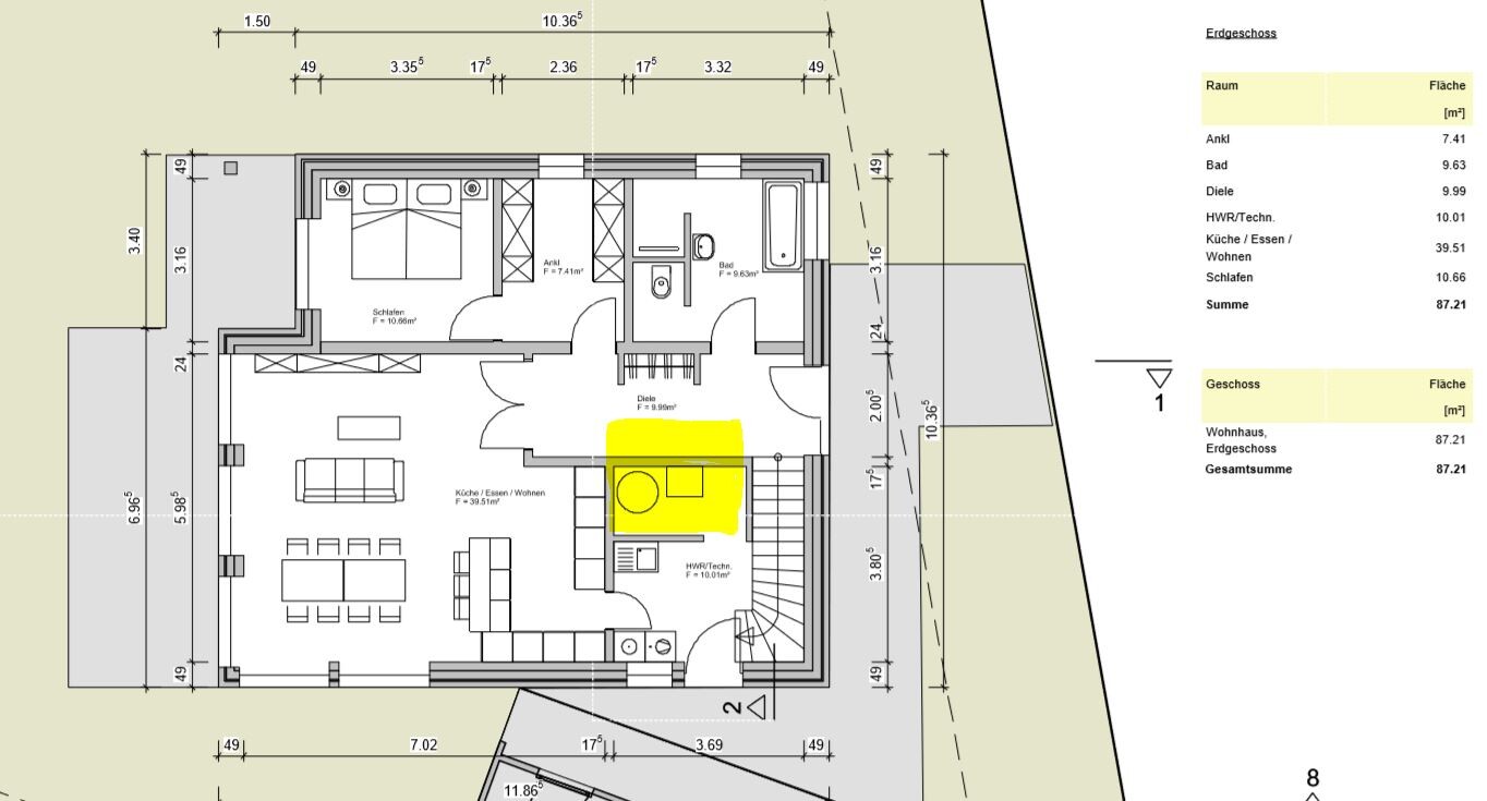 also ich finde es unbehaglich in ein Haus zu kommen und vor eine Treppe zu laufen.... weis nicht, kommt mir iwie unangenehm vor. muss es denn eine gerade Treppe sein? ich finde die lässt Flure immer eng und schlauchig wirken und schafft sehr viel Lauffläche die nicht gut genutzt werden kann es sei denn man plant wirklich viel Platz ein und 1,09m (da muss noch putz abgezogen werden, also viel mehr 1,00m) ist alles andere als großzügig