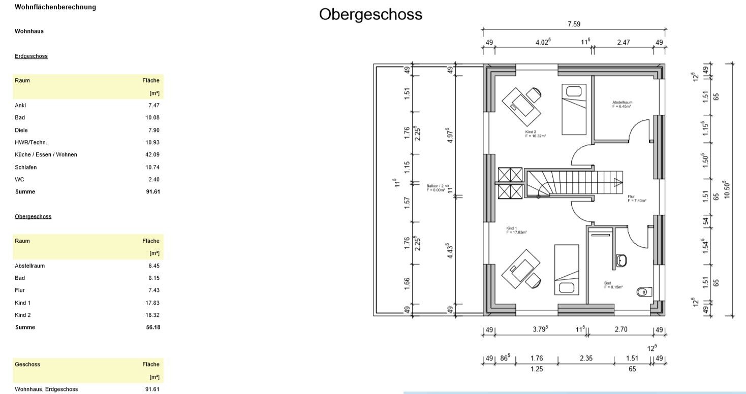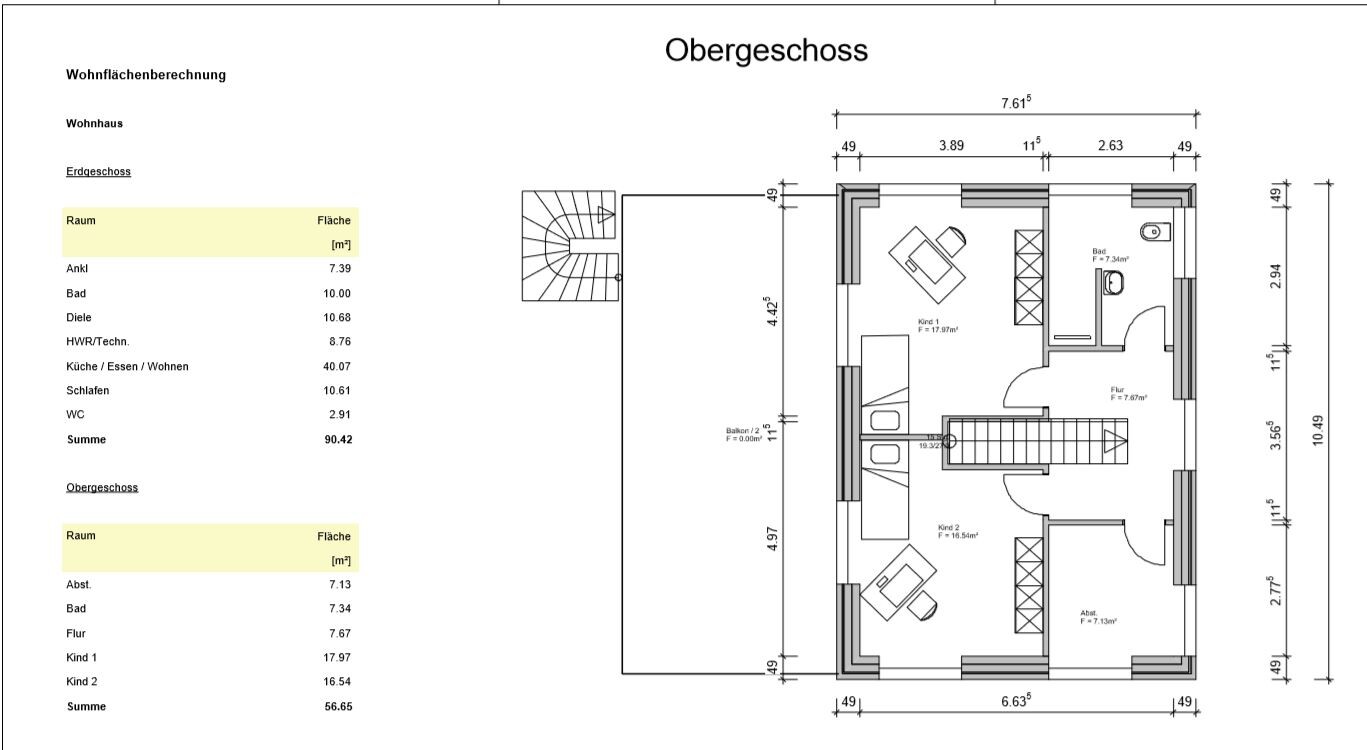 Das Obergeschoss ist ja recht simpel, nur die Badplanung finde ich nicht so prickelnd, der Slalom um Waschbecken und Toilette zur dusche sollte behoben werdenDer Flur ist nicht das Problem bei einer offenen Holztreppe. Die Küchendetails spielen in dieser frühen Phase eh noch keine Rolle. Auch die Badplanung muss jetzt noch nicht im Detail geklärt sein. Nur die Position der Bäder muss halt für die Auslässe durchdacht sein.Grundsätzlich finde ich die Verplanung der Räume ganz gut.