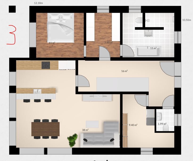 Frage stellte sich ja da, ist die Position des Wohnzimmers/Küche so richtig? Daher gab es dann ja eine geänderte Variante.