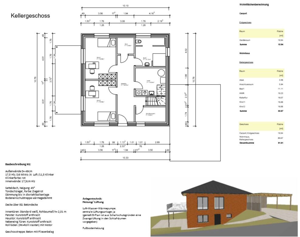 - Raumbedarf im WK, EG: Schlafzimmer 11qm², Ankleide 8qm², 2x Kinderzimmer 15qm², Badezimmer 12qm², großer Wohn- & Essbereich