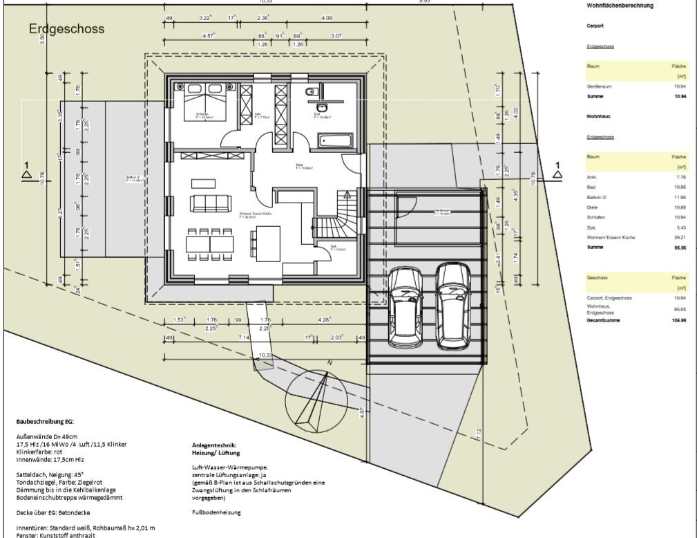 - Anzahl Stellplatz: 2-3 (Stellfläche oder vor dem Carport/ neben dem Haus)
