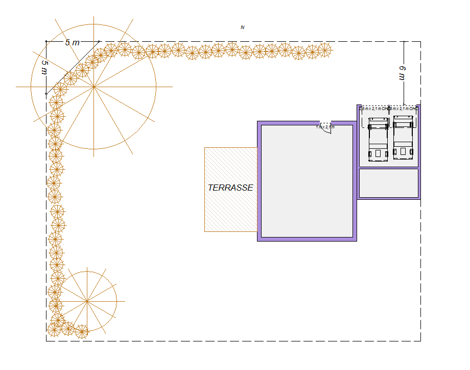 Hier grob skizziert mit ein paar Maßen: Garage 6x8, Haus 11,50 x 9,50m.